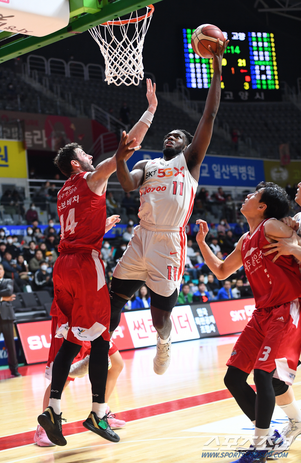 SK가 12일 고양실내체육관에서 열린 2019~2020 현대 모비스 남자프로농구 정규리그 원정경기에서 오리온을 91대87로 눌렀다. 김선형과 최준용의 부상이라는 최악의 위기 상황에 놓였던 SK는 A매치 브레이크 직전 3연승을 오히려 추가, 원주 DB와 함께 26승15패로 공동 선두에 오르는 상승세를 이어갔다.