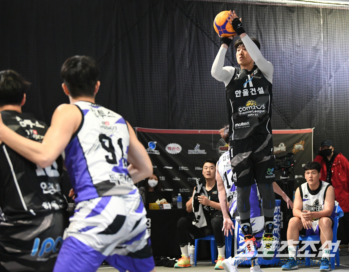 컴투스 KOREA3X3 프리미어리그 2020 2라운드 한울건설과 데상트범퍼스의 경기가 9일 오후 고양 스타필드 스포츠몬스터코트에서 열렸다. 한울건설 방성윤이 2점슛을 시도하고 있다. 고양=정재근 기자 cjg@sportschosun.com