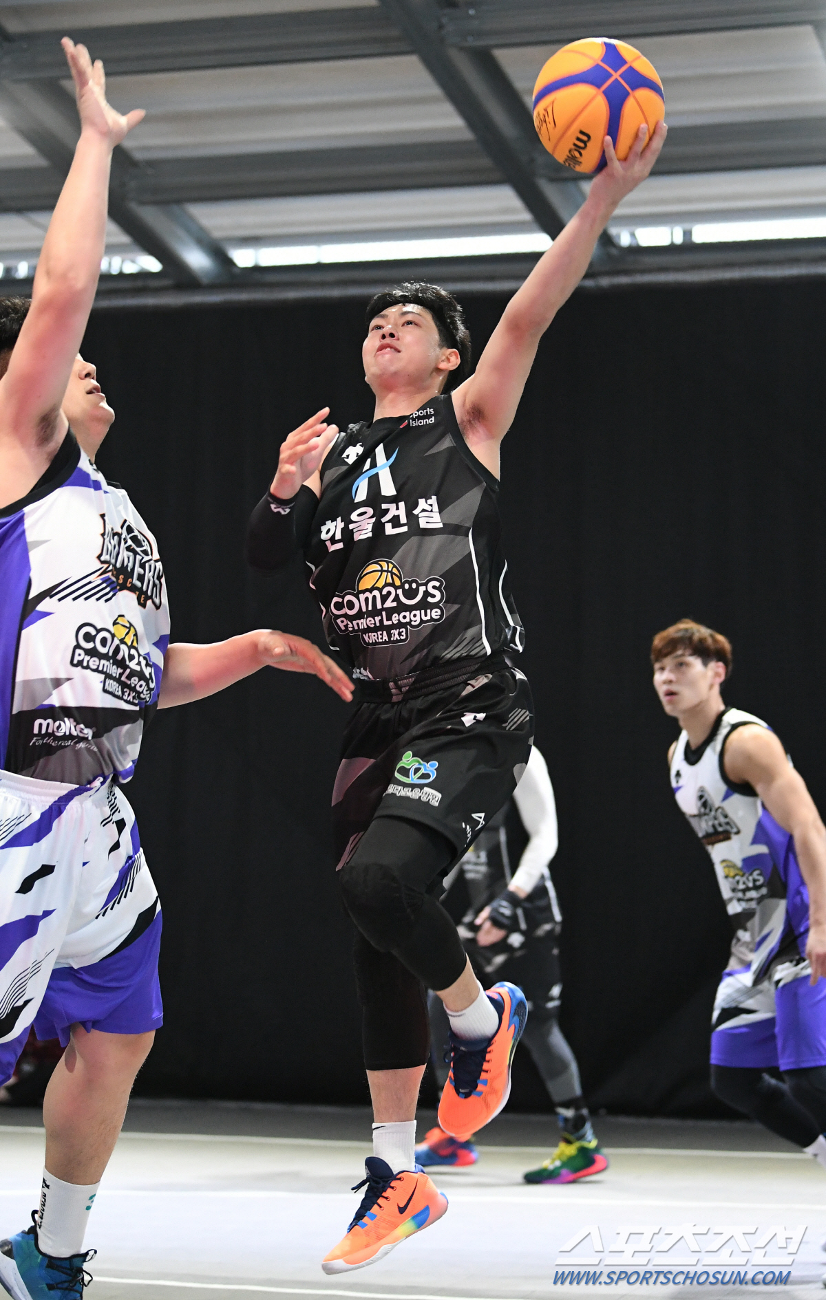 컴투스 KOREA3X3 프리미어리그 2020 2라운드 한울건설과 데상트범퍼스의 경기가 9일 오후 고양 스타필드 스포츠몬스터코트에서 열렸다. 한울건설 박석환이 레이업슛을 시도하고 있다. 고양=정재근 기자 cjg@sportschosun.com