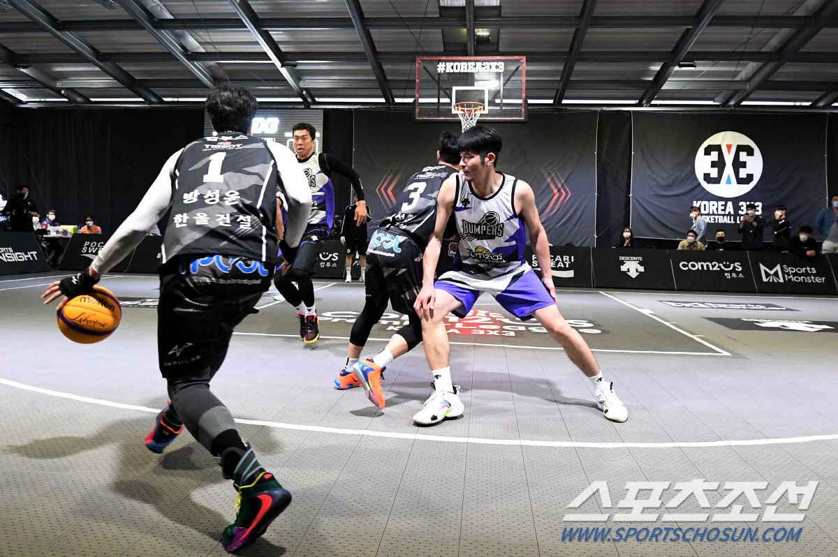컴투스 KOREA3X3 프리미어리그 2020 2라운드 한울건설과 데상트범퍼스의 경기가 9일 오후 고양 스타필드 스포츠몬스터코트에서 열렸다. 양팀 선수들이 치열한 공방전을 펼치고 있다. 고양=정재근 기자 cjg@sportschosun.com