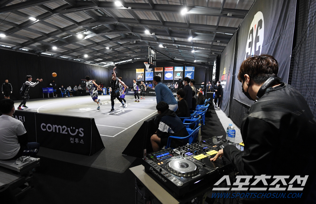 컴투스 KOREA3X3 프리미어리그 2020 2라운드 한울건설과 데상트범퍼스의 경기가 9일 오후 고양 스타필드 스포츠몬스터코트에서 열렸다. 디제이의 음악의 울려퍼지는 가운데 양팀 선수들이 치열한 공방전을 펼치고 있다. 고양=정재근 기자 cjg@sportschosun.com
