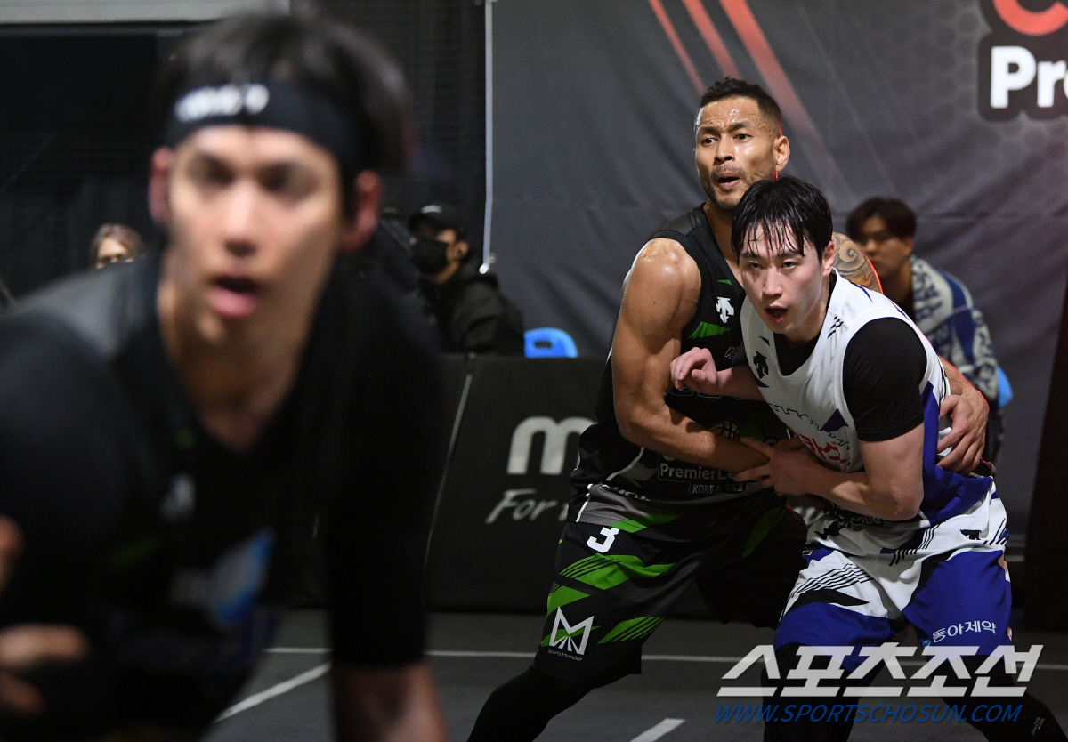 컴투스 KOREA3X3 프리미어리그 2020 2라운드 한솔레미콘과 박카스의 경기가 9일 오후 고양 스타필드 스포츠몬스터코트에서 열렸다. 한솔레미콘 전태풍이 필사적으로 수비하고 있다. 고양=정재근 기자 cjg@sportschosun.com