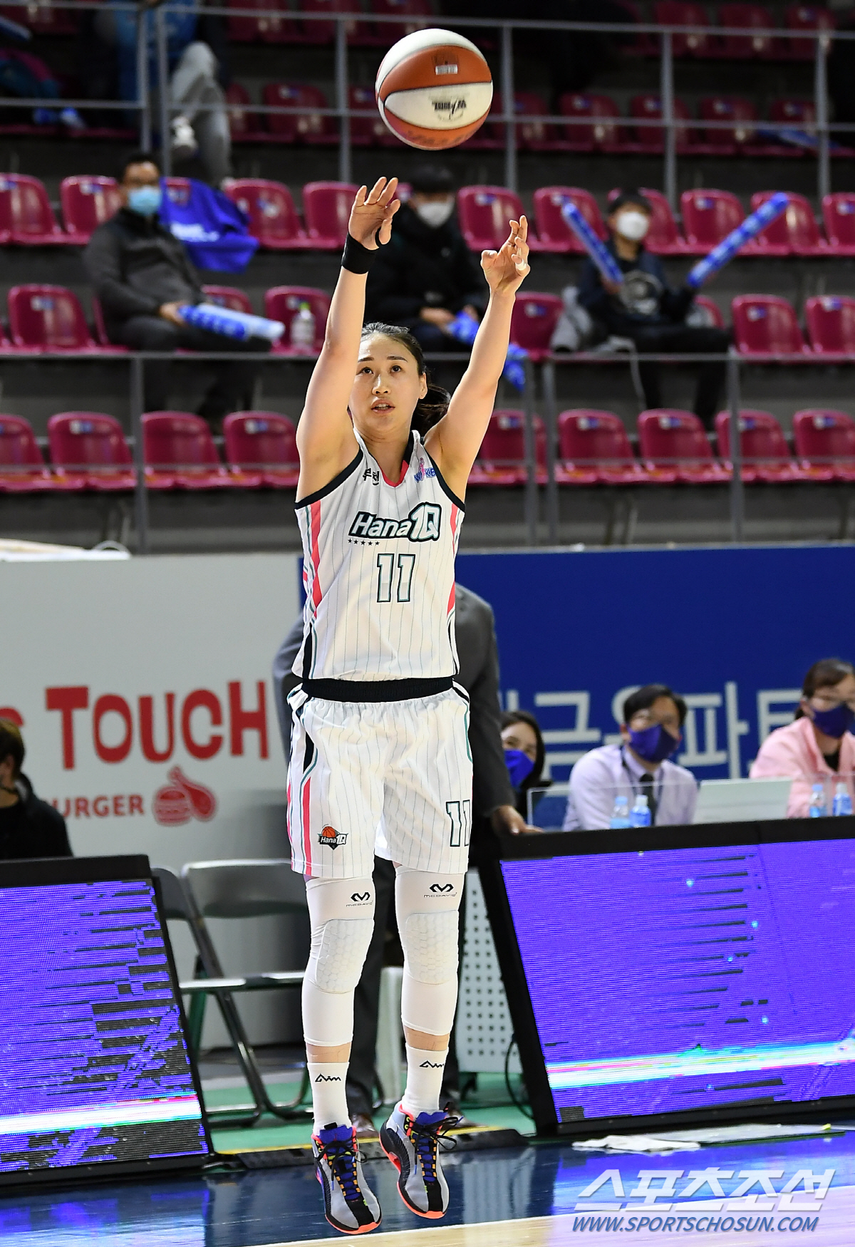 강이슬은 1쿼터에 3점슛 2개를 터뜨렸다. 2개를 추가해 2012~2013 시즌 프로 데뷔 후 9시즌 만에 500 3점슛 기록을 채웠다. WKBL 역대 12번째 기록. 중요한 건 역대 최연소 500 3점슛 달성 기록을 갈아치웠다는 것. 종전 기록은 KB스타즈 강아정이 2017년 세운 만 27세6개월. 강이슬은 만 26세7개월의 나이로 거의 1년을 앞당겼다.