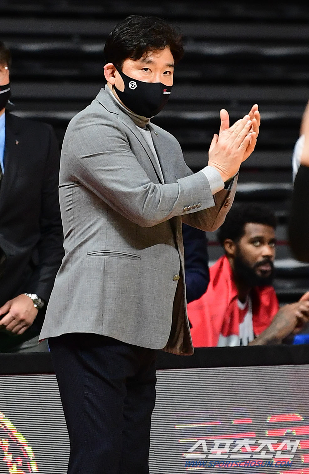 2020-2021 KBL리그 고양 오리온과 안양 KGC의 경기가 16일 고양체육관에서 열렸다. KGC 김승기 감독이 박수를 치고 있다. 고양=정재근 기자 cjg@sportschosun.com/2020.12.16/