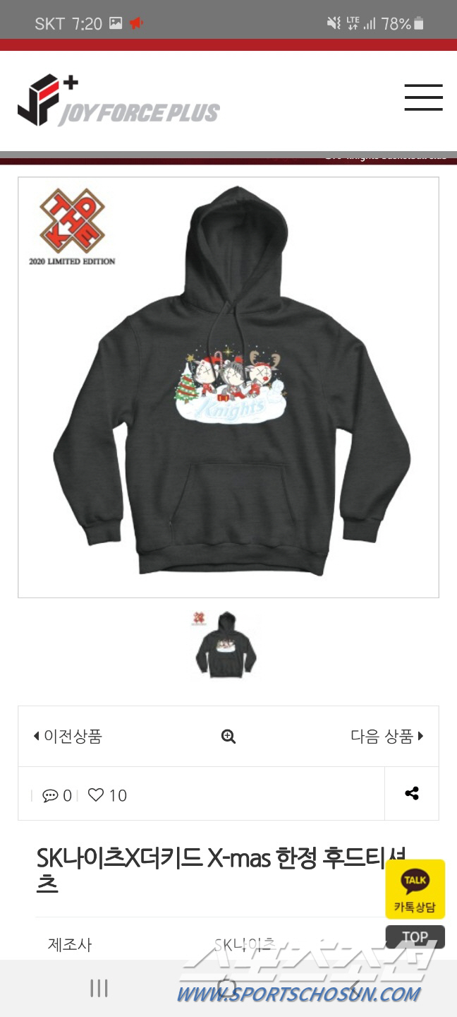 [스포츠조선 이원만 기자] 프로농구 서울 SK가 25일부터 1월초까지 크리스마스 한정 특별 후드 티셔츠를 판매한다.