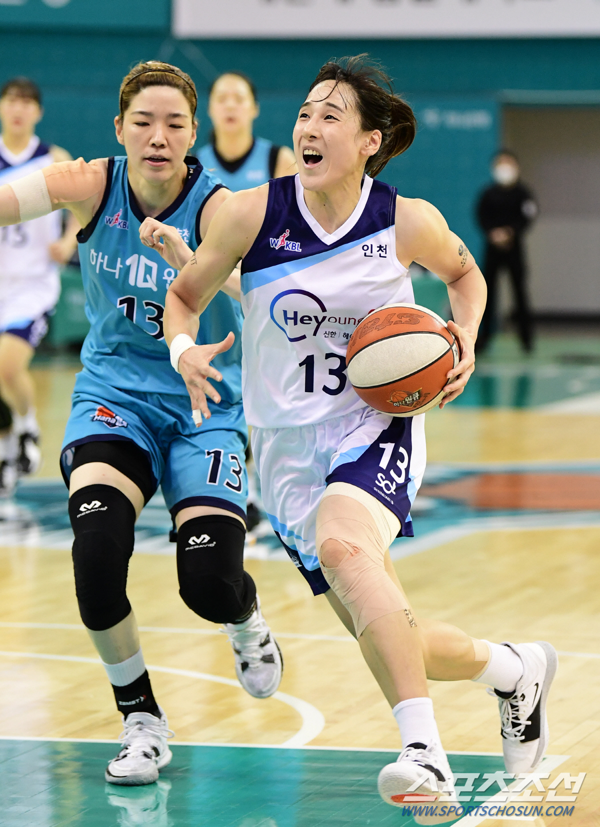 경기 초반 분위기는 하나원큐가 앞섰다. 신한은행은 전반을 32-38로 밀렸다. 3쿼터 들어 분위기를 바꿨다. 신한은행은 강력한 압박 수비에 달리는 농구를 묶어 차근차근 점수를 쌓았다. 당황한 하나원큐는 실책을 범하기 일쑤였다. 신한은행은 3쿼터 55-55 동점을 만들었다.