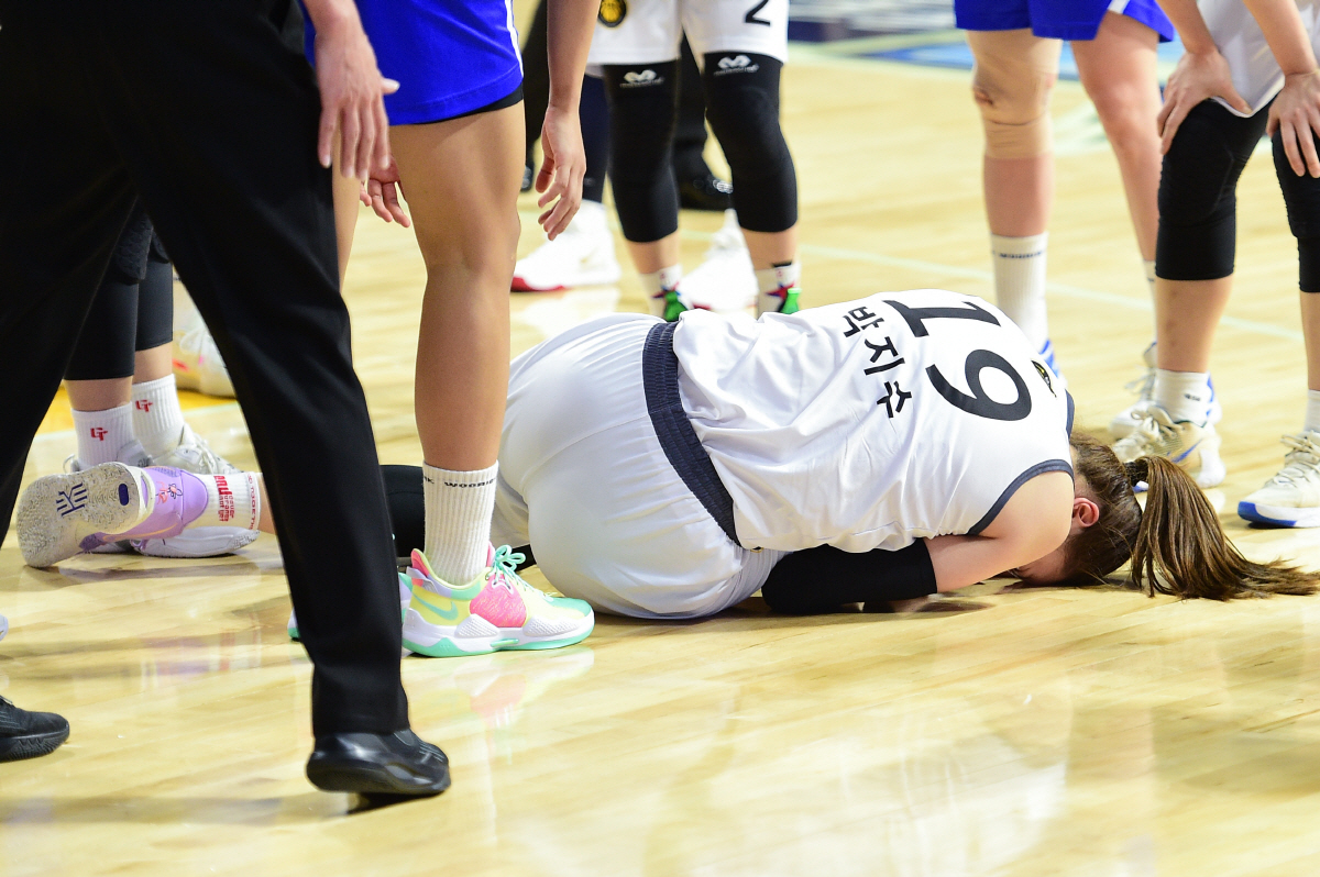하지만 우승에 더 근접했음에도 불구, KB로선 결코 마음 편하지 못한 경기였다. 팀의 기둥인 박지수가 2쿼터 종료 1분 58초를 남기고 우리은행 박지현과 부딪혀 오른 발목을 다쳤기 때문이다. 바닥에 넘어진 후 흐느껴 울 정도로 고통스러워 했고, 결국 들것에 실려나간 후 다시 경기에 투입되지 못했다. 하필 이날이 주말인데다, 원정 경기여서 바로 병원으로 후송은 하지 못했고, 10일 오전 성남시 분당에 위치한 구단 지정병원에서 MRI를 찍어 정밀 검사를 했다. KB 관계자는 "오른쪽 발등 미세 파열 진단을 받았다. 다행스럽게도 3~4일 정도 휴식 후 통증이 없어지면 다시 훈련을 할 수 있다고 한다"며 "박지수가 신장에 비해 상당히 유연한 편이고, 무릎을 부딪힌 것이 아니어서 더 큰 부상은 피한 것 같다. 당분간 몸과 심리적 안정을 취하는 기간은 필요할 것 같다"고 말했다. 이어 "53경기 연속 두자릿수 득점에 도전하고 있었는데, 이날 8득점에 그쳐 이를 이어나가지 못한 것을 더 아쉬워했다"고 덧붙였다.