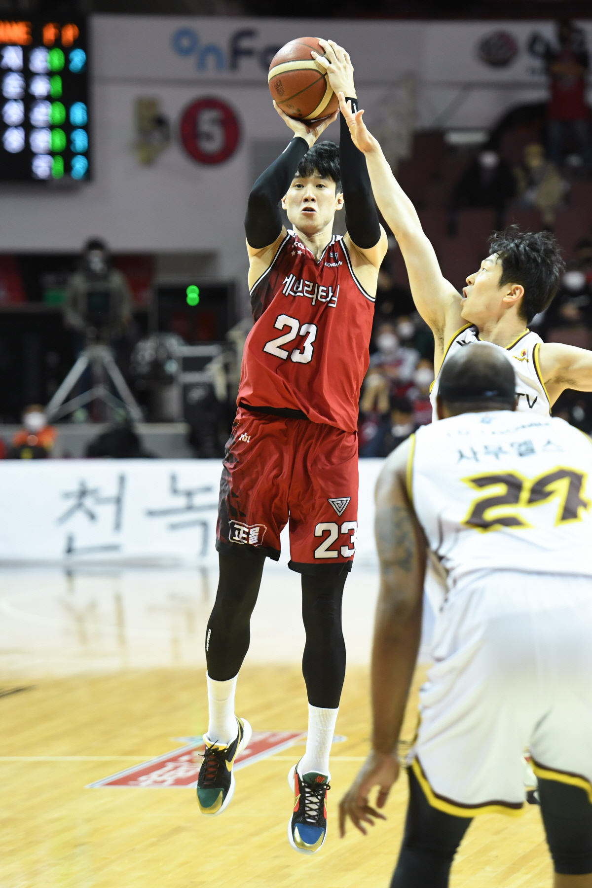 LG는 18일 안양실내체육관에서 열린 2021~2022 KGC 인삼공사 정관장 프로농구 정규리그 원정경기에서 KGC를 82대79로 눌렀다.