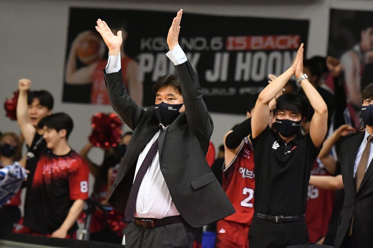 김 감독이 이끄는 KGC는 25일 안양실내체육관에서 벌어진 '2021∼2022 KGC인삼공사 정관장 프로농구' 4강 플레이오프(5전3선승제) 3차전 수원 KT와의 홈경기서 83대77로 승리했다. KGC는 1차전 패배 이후 2연승을 달리며 오히려 유리한 고지를 점했다. 이날 안양실내체육관은 올시즌 월요일 기준 최다 관중(3417명)을 기록해 기쁨을 더했다. 종전 최다 기록은 2045명이었다.