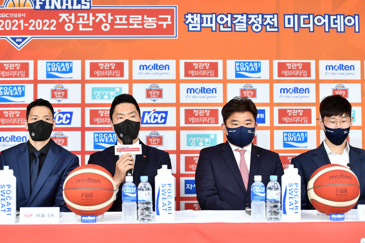 정규리그 1위 SK는 전희철 감독과 김선형 최준용이 참석했고, KGC는 김승기 감독과 오세근 전성현이 자리를 빛냈다.