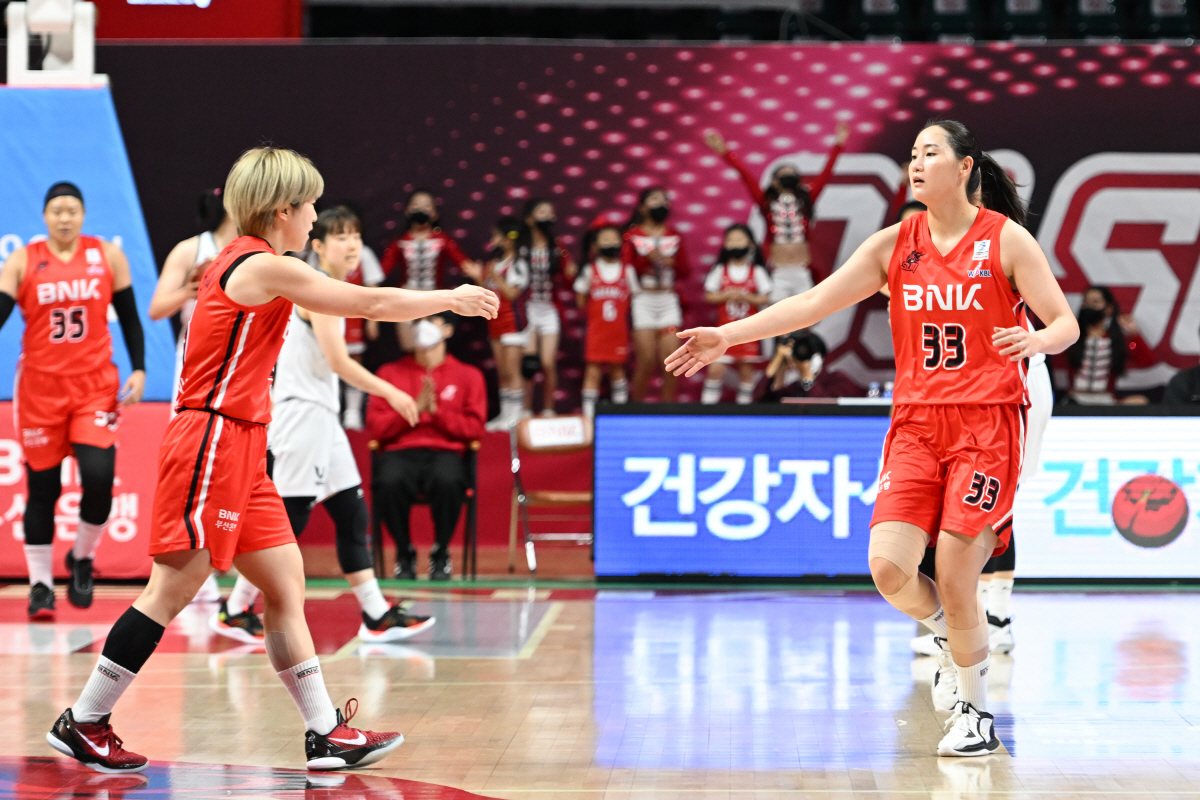 [부산=스포츠조선 이원만 기자] 단단한 팀플레이와 기본기로 무장한 부산 BNK 썸이 창단 첫 4연승을 달성하며 리그 공동 1위가 됐다. 주전 선수 4명이 두 자릿수 득점으로 승리를 합작했다.
