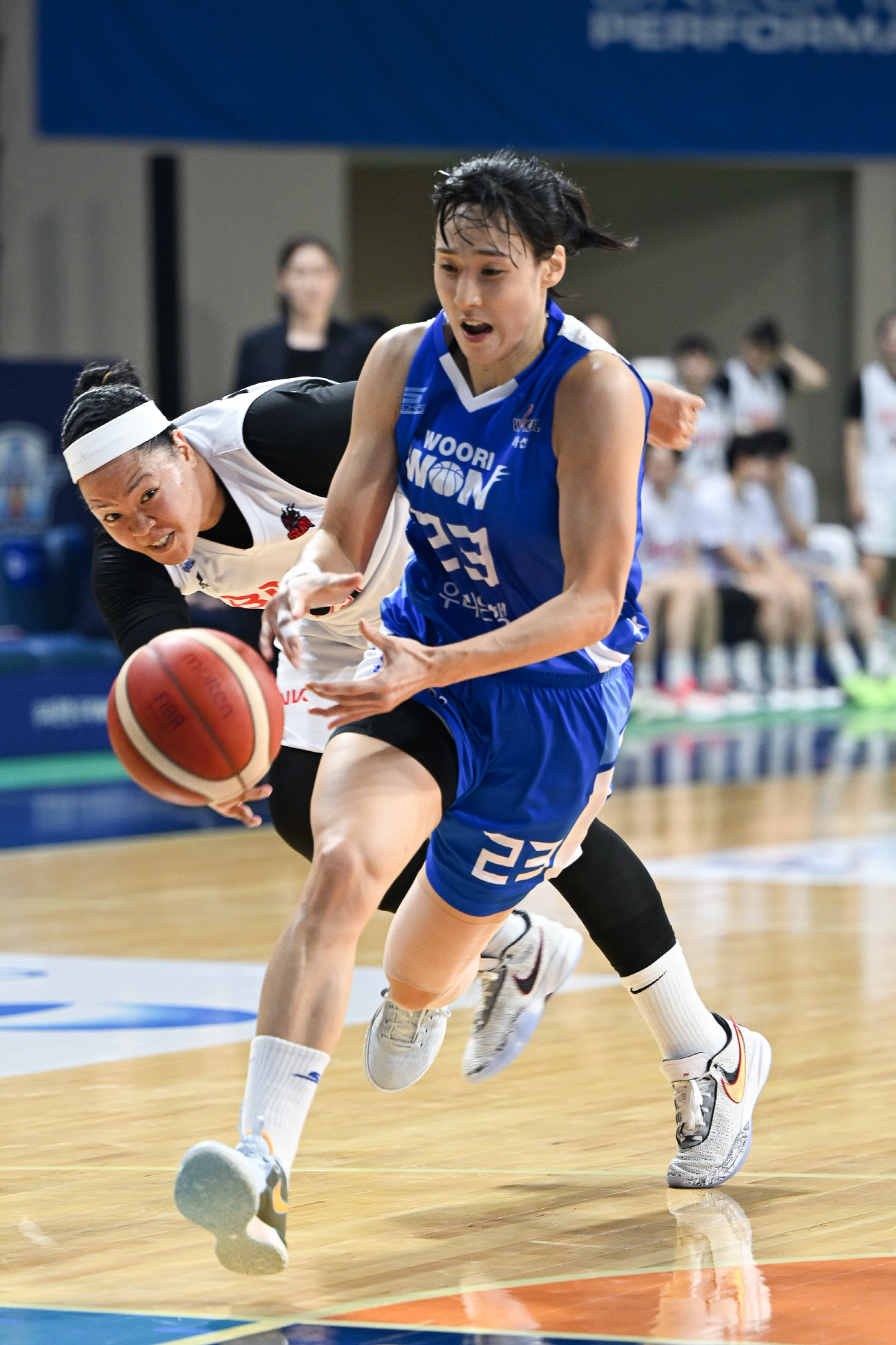[아산=스포츠조선 이원만 기자] 2023~2024시즌 여자 프로농구가 개막전부터 뜨거운 혈전으로 막을 열었다. 지난 시즌 챔피언결정전 매치업 상대였던 아산 우리은행과 부산 BNK가 첫 경기부터 연장전 명승부를 펼치며 현장을 찾은 농구 팬들을 열광의 도가니로 몰아넣었다. 치열한 승부에서 마지막에 웃은 쪽은 '디펜딩챔피언' 우리은행이었다.