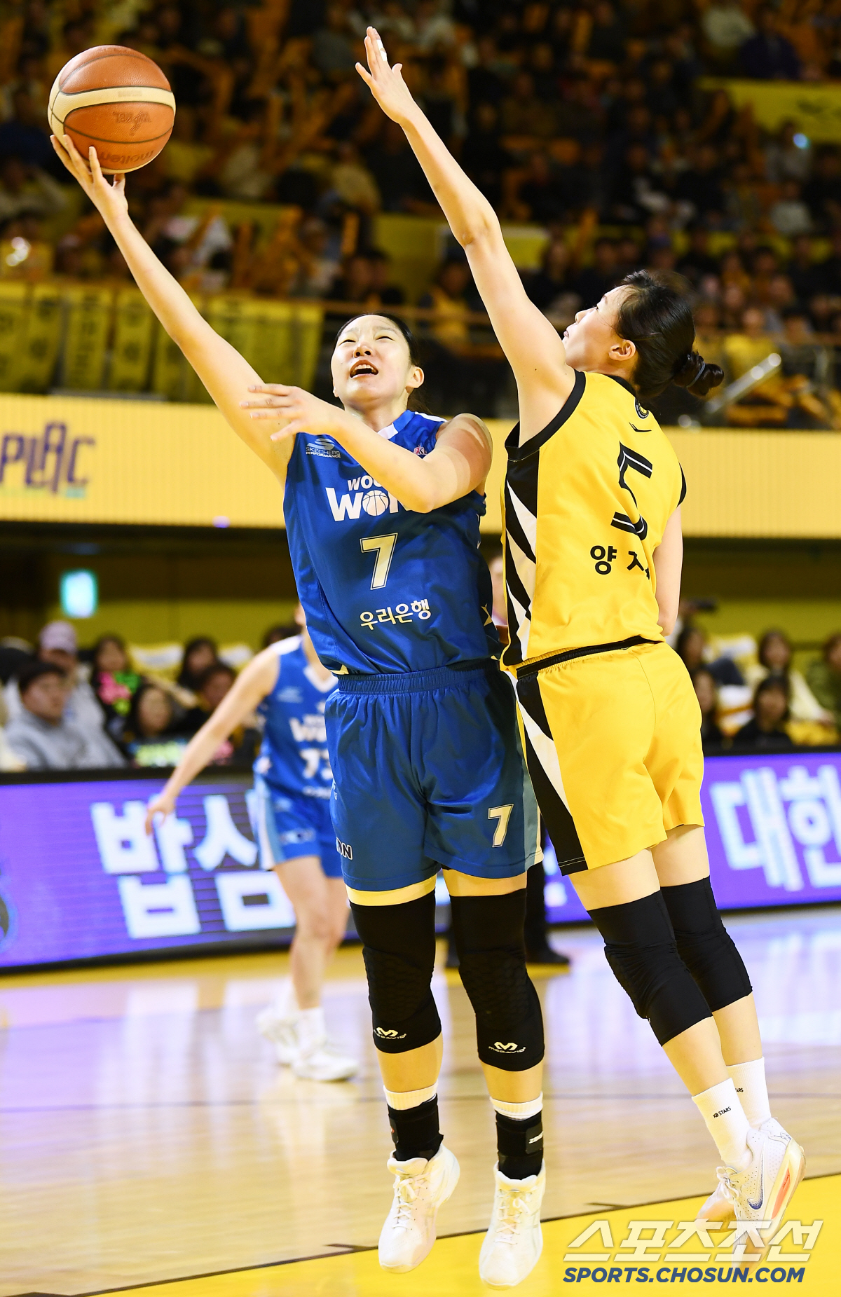 16일 청주체육관에서 열린 여자프로농구 KB스타즈와 우리은행의 경기. 우리은행 이민지가 KB스타즈 양지수를 제치며 레이업슛을 시도하고 있다. 인천=정재근 기자 cjg@sportschosun.com