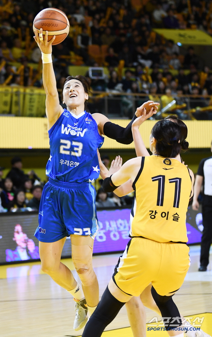 결국 골밑슛으로 KB의 추격 흐름을 차단했다. 25-21, 4점 차 우리은행의 리드로 전반전 종료.