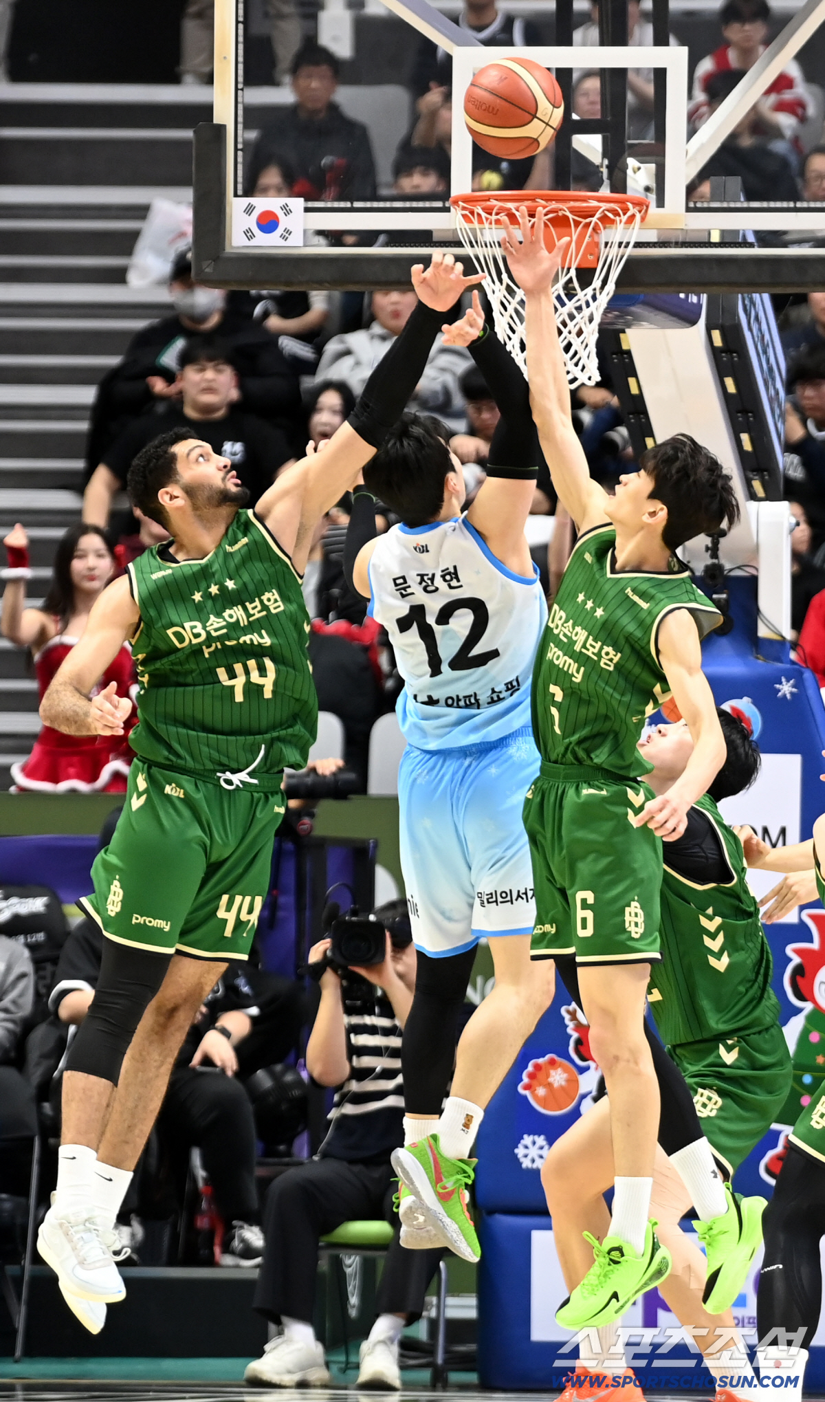 19일 수원KT소닉붐아레나에서 열린 프로농구 수원 KT와 원주 DB의 경기. KT 문정현이 DB 무스타파, 이유진의 수비를 피해 골밑슛을 시도하고 있다. 수원=허상욱 기자wook@sportschosun.com