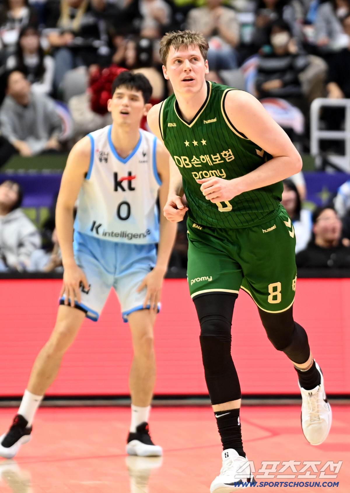 19일 수원KT소닉붐아레나에서 열린 프로농구 수원 KT와 원주 DB의 경기. DB 엘런슨이 3점슛을 성공한 후 전광판을 바라보고 있다. 수원=허상욱 기자wook@sportschosun.com