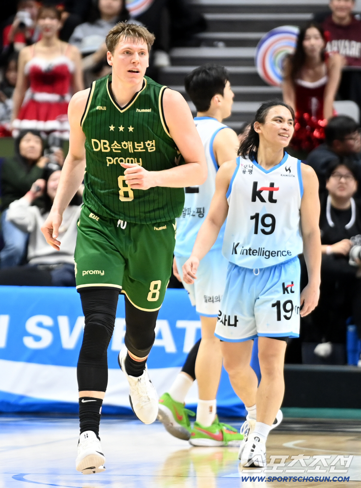 19일 수원KT소닉붐아레나에서 열린 프로농구 수원 KT와 원주 DB의 경기. DB 엘런슨이 4쿼터 리드를 가져오는 득점을 성공한 후 기뻐하고 있다. 수원=허상욱 기자wook@sportschosun.com