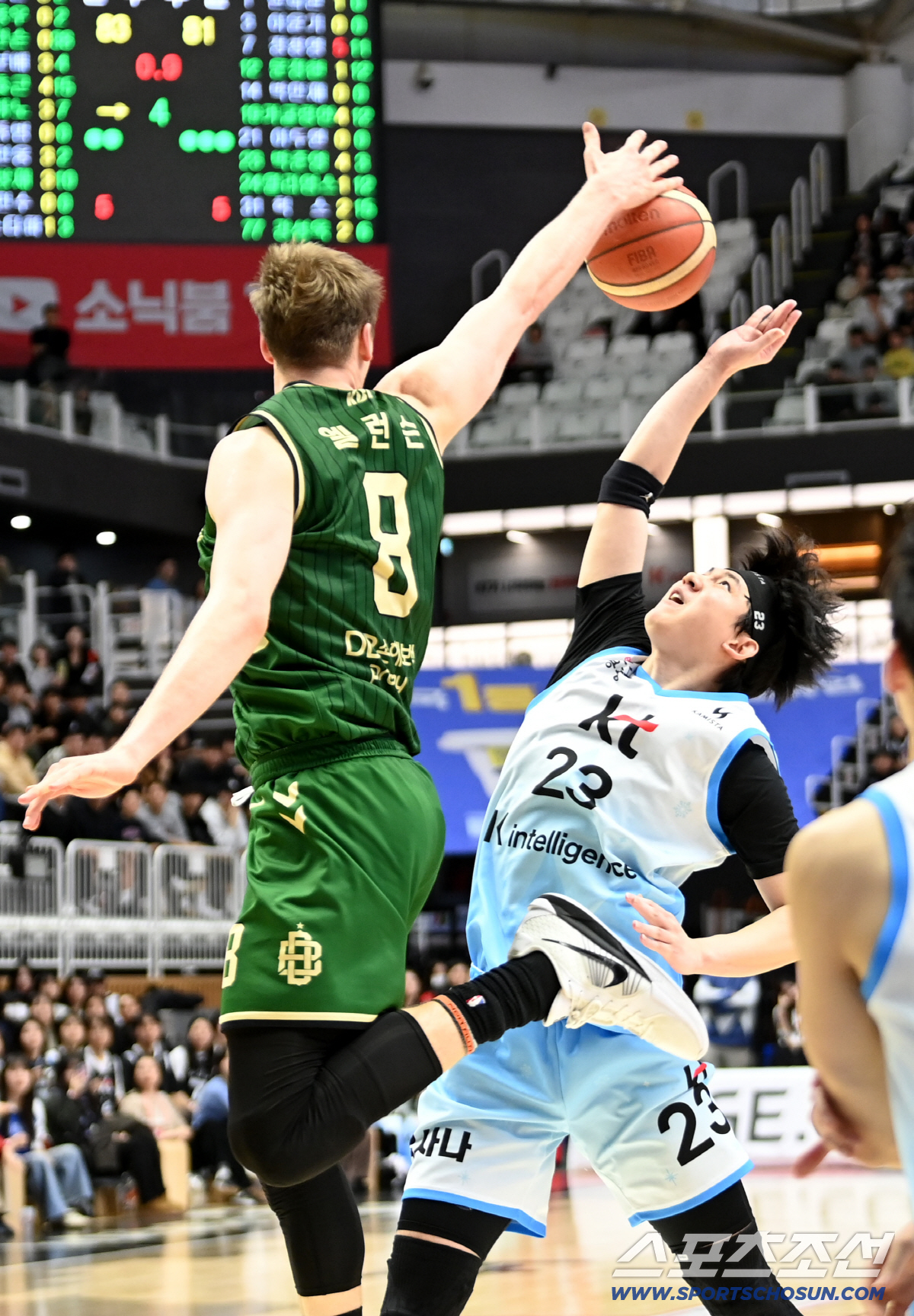 19일 수원KT소닉붐아레나에서 열린 프로농구 수원 KT와 원주 DB의 경기. DB 엘런슨이 KT 박준영의 슛을 막아내고 있다. 수원=허상욱 기자wook@sportschosun.com