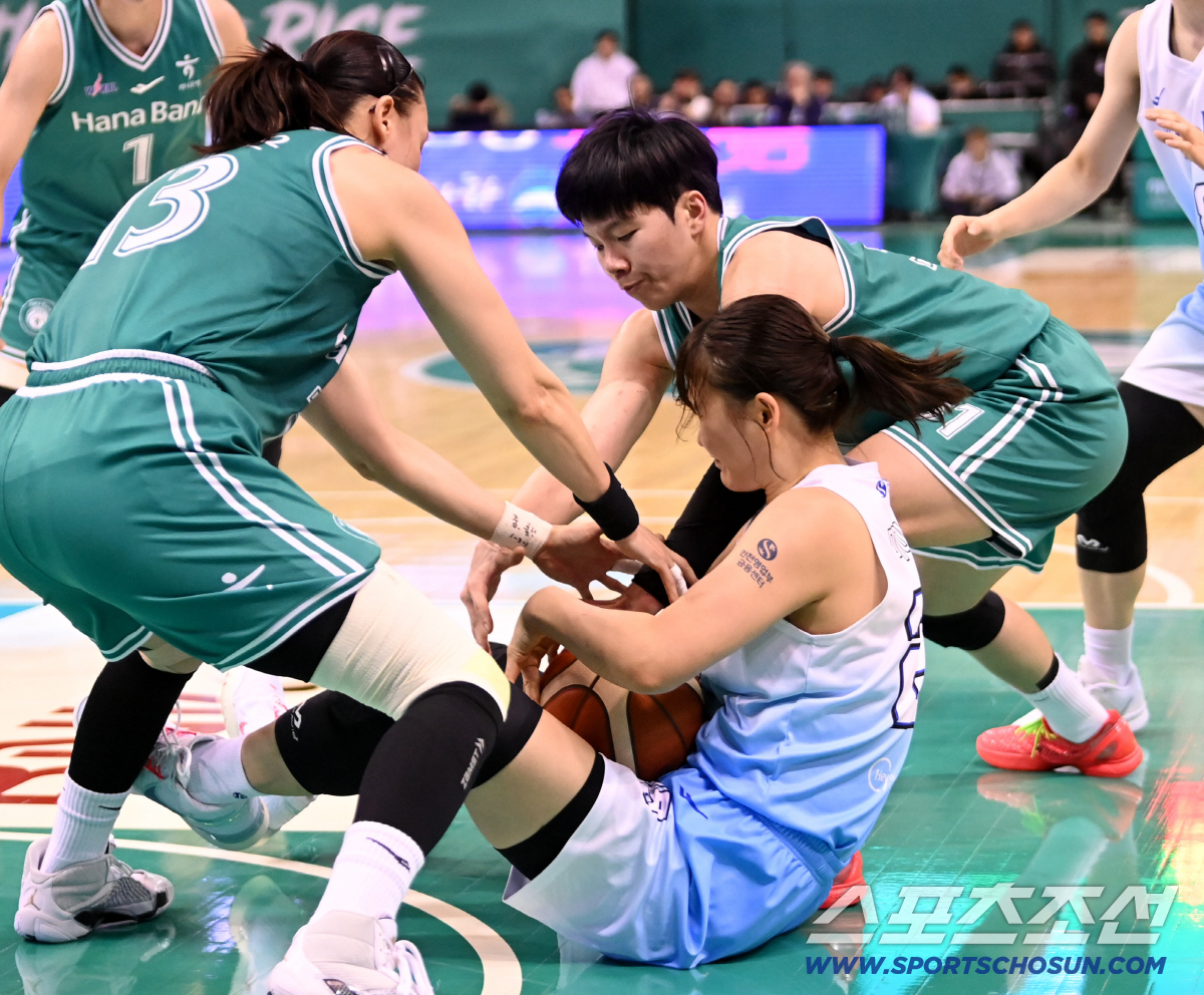 26일 부천체육관에서 열린 여자프로농구 하나은행과 신한은행의 경기. 신한은행 미마 루이와 하나은행 김정은, 진안이 공을 다투고 있다. 부천=허상욱 기자wook@sportschosun.com