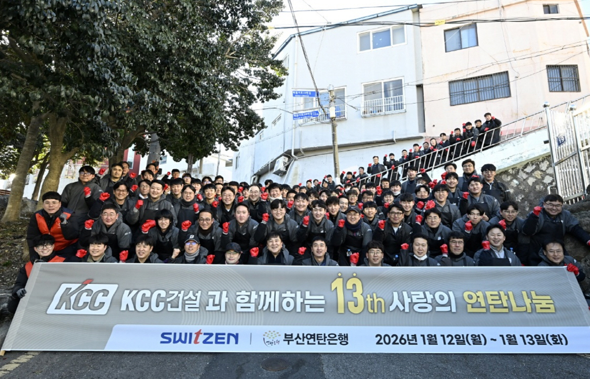 12일 KCC 건설이 부산 지역에서 연탄 나눔 봉사활동을 했다. 사진제공=부산 KCC
