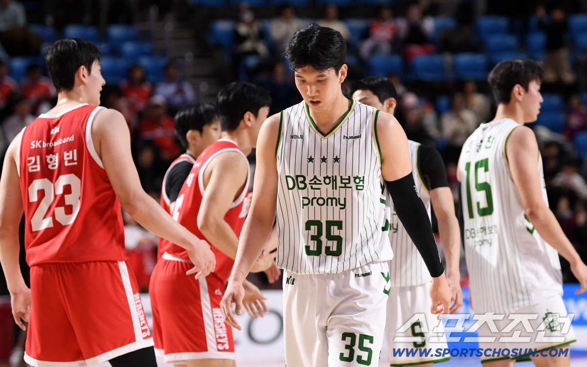 13일 잠실학생체육관에서 열린 프로농구 서울 SK와 원주 DB의 경기. 패한 DB 선수들이 아쉬워하고 있다. 잠실=박재만 기자 pjm@sportschosun.com/2026.01.13/