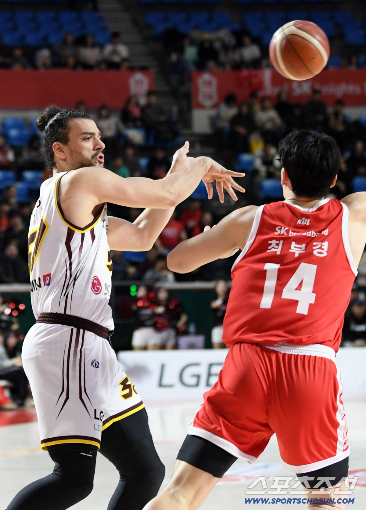 15일 잠실학생체육관에서 열린 프로농구 서울 SK와 창원 LG의 경기. LG 마레이가 패스를 시도하고 있다. 잠실=박재만 기자 pjm@sportschosun.com