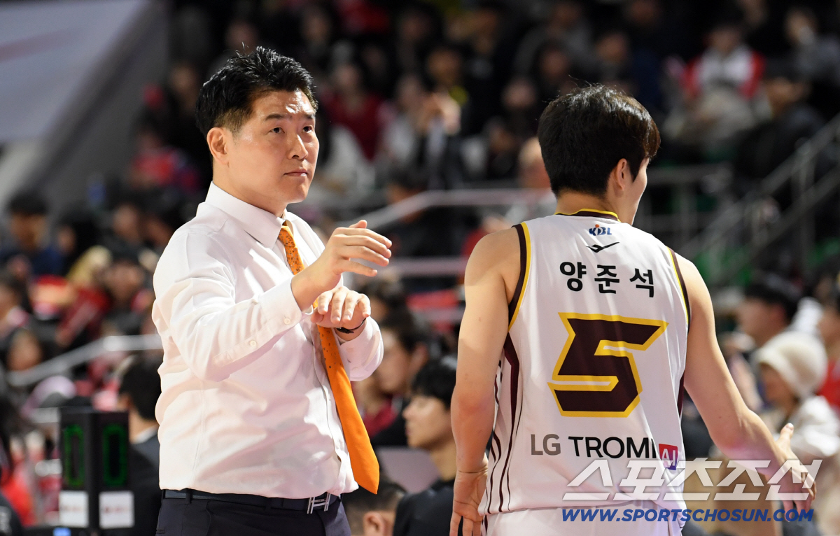 15일 잠실학생체육관에서 열린 프로농구 서울 SK와 창원 LG의 경기. 조상현 감독이 작전 지시를 하고 있다. 잠실=박재만 기자 pjm@sportschosun.com