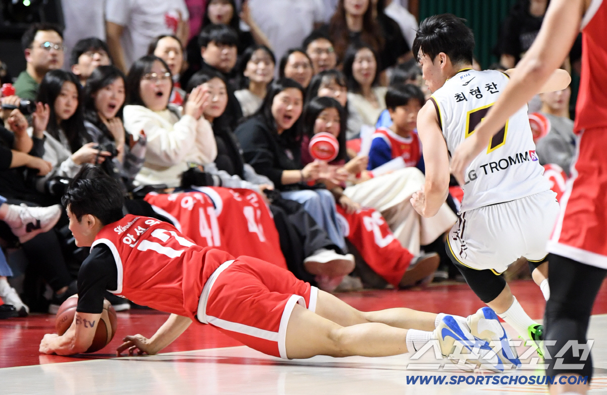 15일 잠실학생체육관에서 열린 프로농구 서울 SK와 창원 LG의 경기. SK 안성우가 넘어지는 순간에도 볼을 사수하고 있다. 잠실=박재만 기자 pjm@sportschosun.com