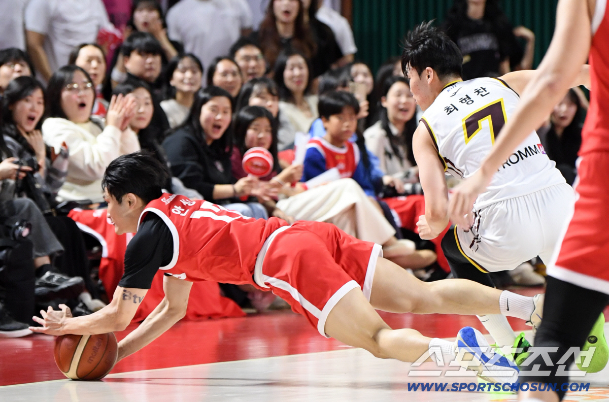 15일 잠실학생체육관에서 열린 프로농구 서울 SK와 창원 LG의 경기. SK 안성우가 넘어지는 순간에도 볼을 사수하고 있다. 잠실=박재만 기자 pjm@sportschosun.com