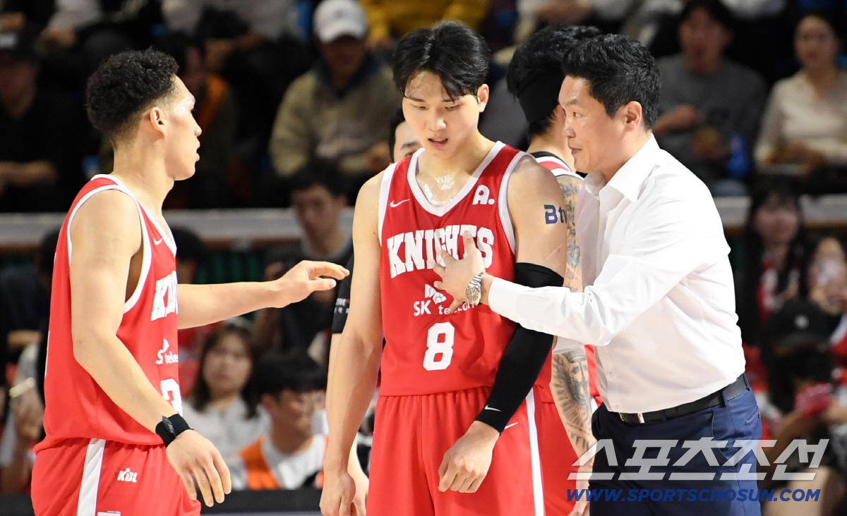 15일 잠실학생체육관에서 열린 프로농구 서울 SK와 창원 LG의 경기. 전희철 감독이 작전 지시를 하고 있다. 잠실=박재만 기자 pjm@sportschosun.com