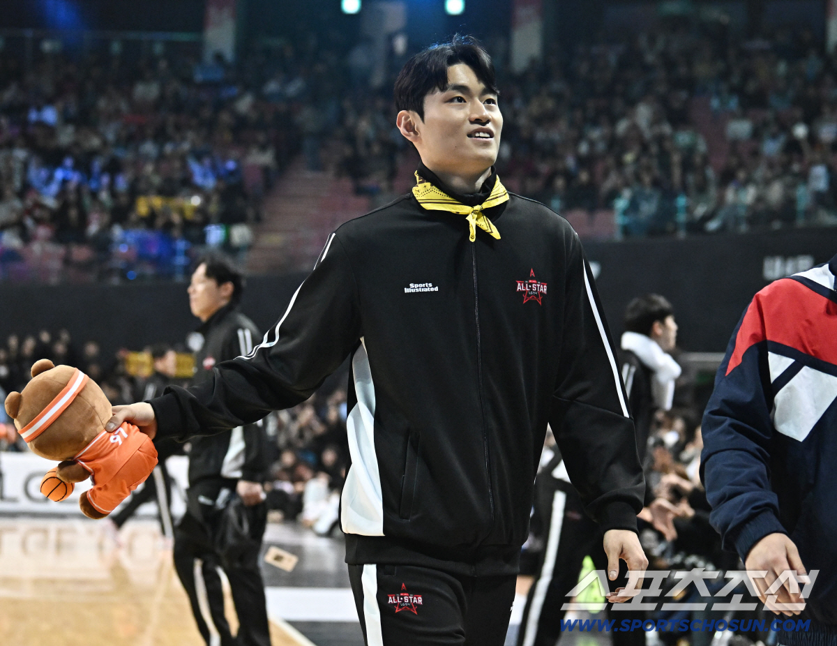 18일 잠실실내체육관에서 열린 프로농구 올스타전. 팬에게 인형 선물하는 유기상. 잠실=송정헌 기자songs@sportschosun.com