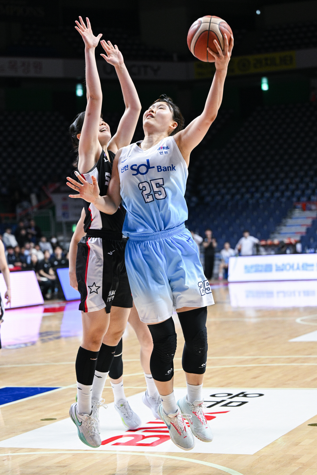 1쿼터 한때 여유있게 앞서나갔지만 막판 반격에 밀려 18-17로 불안하게 출발했다. 2쿼터에도 신한은행의 투지는 강력했다.
