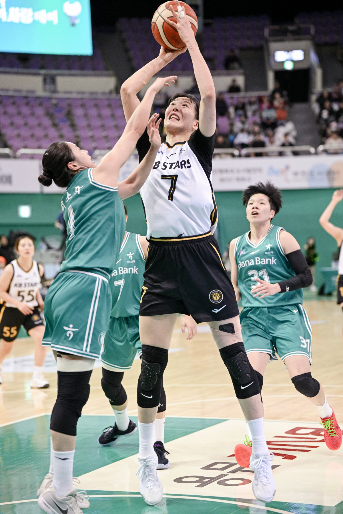 여자프로농구 KB스타즈가 하나은행을 꺾고 공동 1위로 올랐다. KB스타즈는 9일 부천실내체육관에서 벌어진 'BNK금융 2025 2025~2026 여자프로농구' 하나은행전서 막판까지 가는 대혈전 끝에 68대65로 승리, 7연승과 함께 하나은행과 1위 자리를 나눠가지게 됐다. 또 시즌 상대전적에서도 3승2패로 앞서며 만약 동률을 이뤘을 경우 우위를 점하게 됐다.