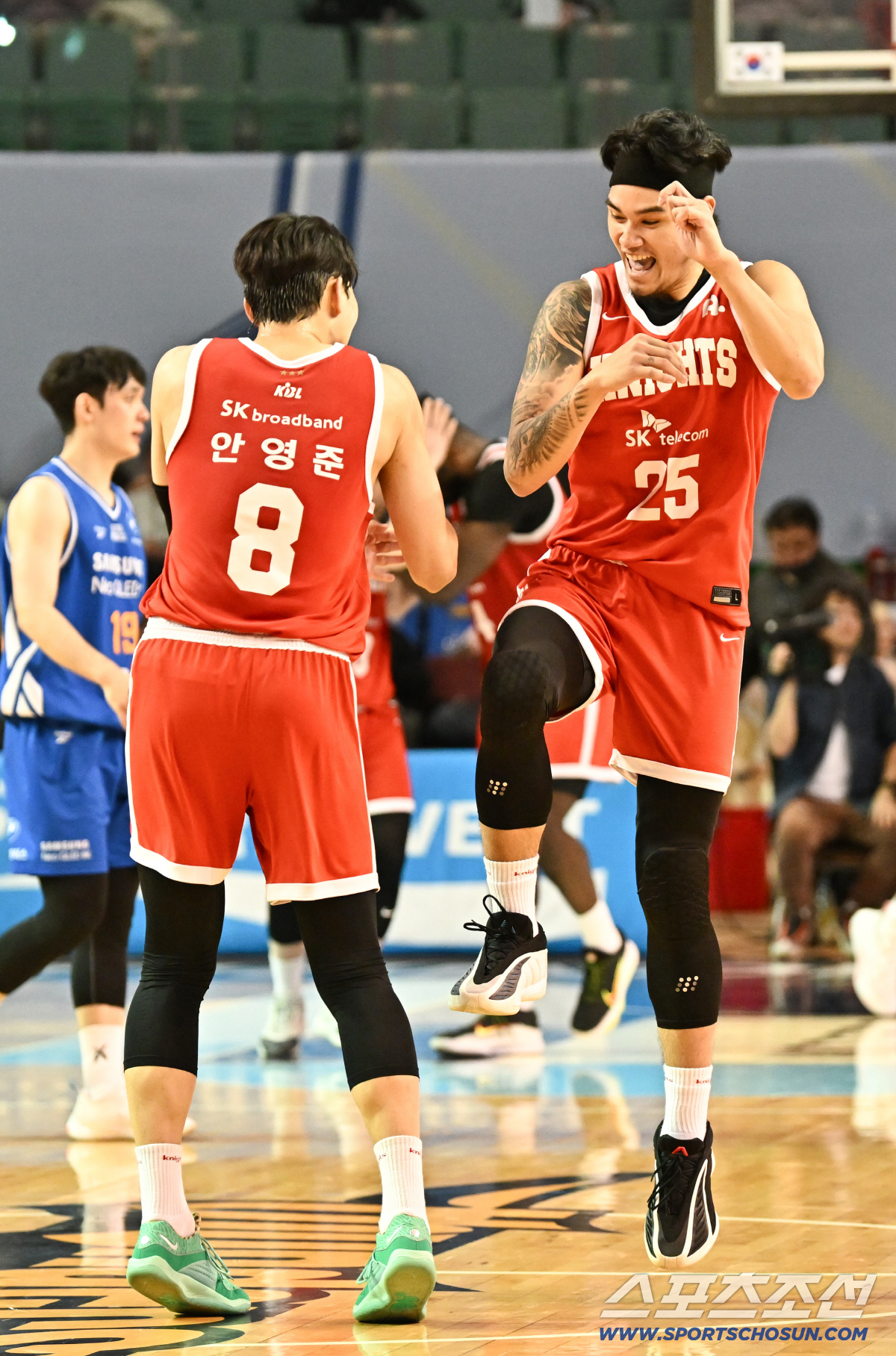 17일 잠실실내체육관에서 열린 서울 삼성과 서울 SK의 경기. SK 톨렌티노가 4쿼터 후반 결정적인 순간 득점을 올린 뒤 환호하고 있다. 잠실=박재만 기자 pjm@sportschosun.com