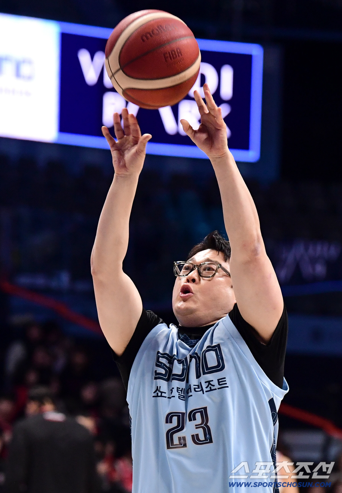 5일 고양 소노아레나에서 열린 프로농구 고양 소노와 안양 정관장의 경기. 개그맨 이선민이 시투 행사를 펼쳤다. 힘차게 시투가는 이선민. 고양=송정헌 기자songs@sportschosun.com