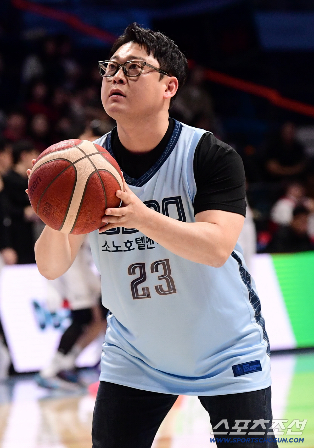 5일 고양 소노아레나에서 열린 프로농구 고양 소노와 안양 정관장의 경기. 개그맨 이선민이 시투 행사를 펼쳤다. 힘차게 시투가는 이선민. 고양=송정헌 기자songs@sportschosun.com