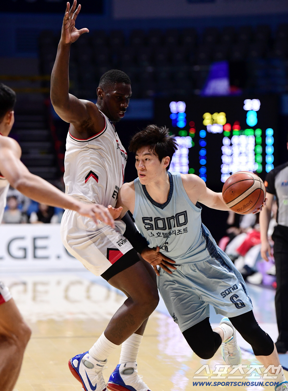 5일 고양 소노아레나에서 열린 프로농구 고양 소노와 안양 정관장의 경기. 고양 이정현이 안양 수비를 제치며 돌파를 시도하고 있다. 고양=송정헌 기자songs@sportschosun.com