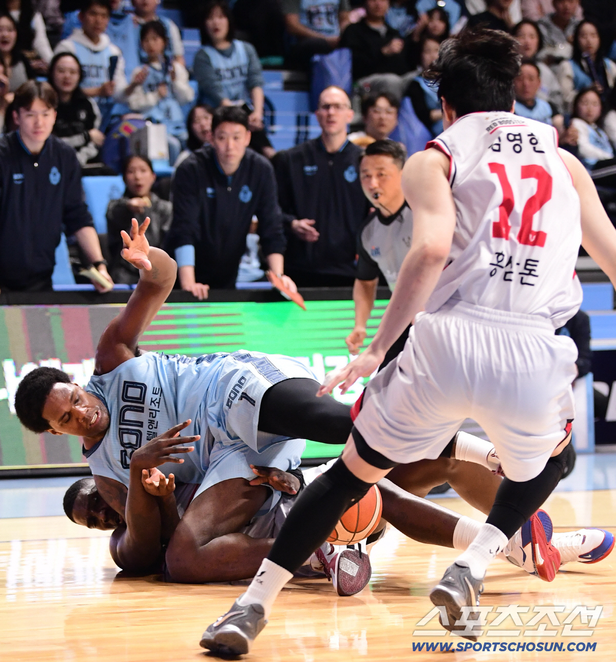 5일 고양 소노아레나에서 열린 프로농구 고양 소노와 안양 정관장의 경기. 소노 나이트와 정관장 오브라이언트가 볼 다툼을 벌이고 있다. 고양=송정헌 기자songs@sportschosun.com