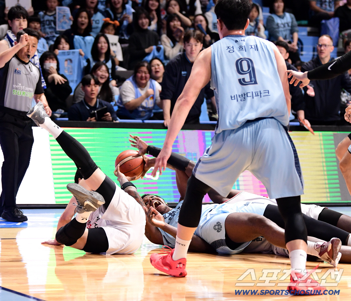 5일 고양 소노아레나에서 열린 프로농구 고양 소노와 안양 정관장의 경기. 소노 나이트와 정관장 오브라이언트가 볼 다툼을 벌이고 있다. 고양=송정헌 기자songs@sportschosun.com
