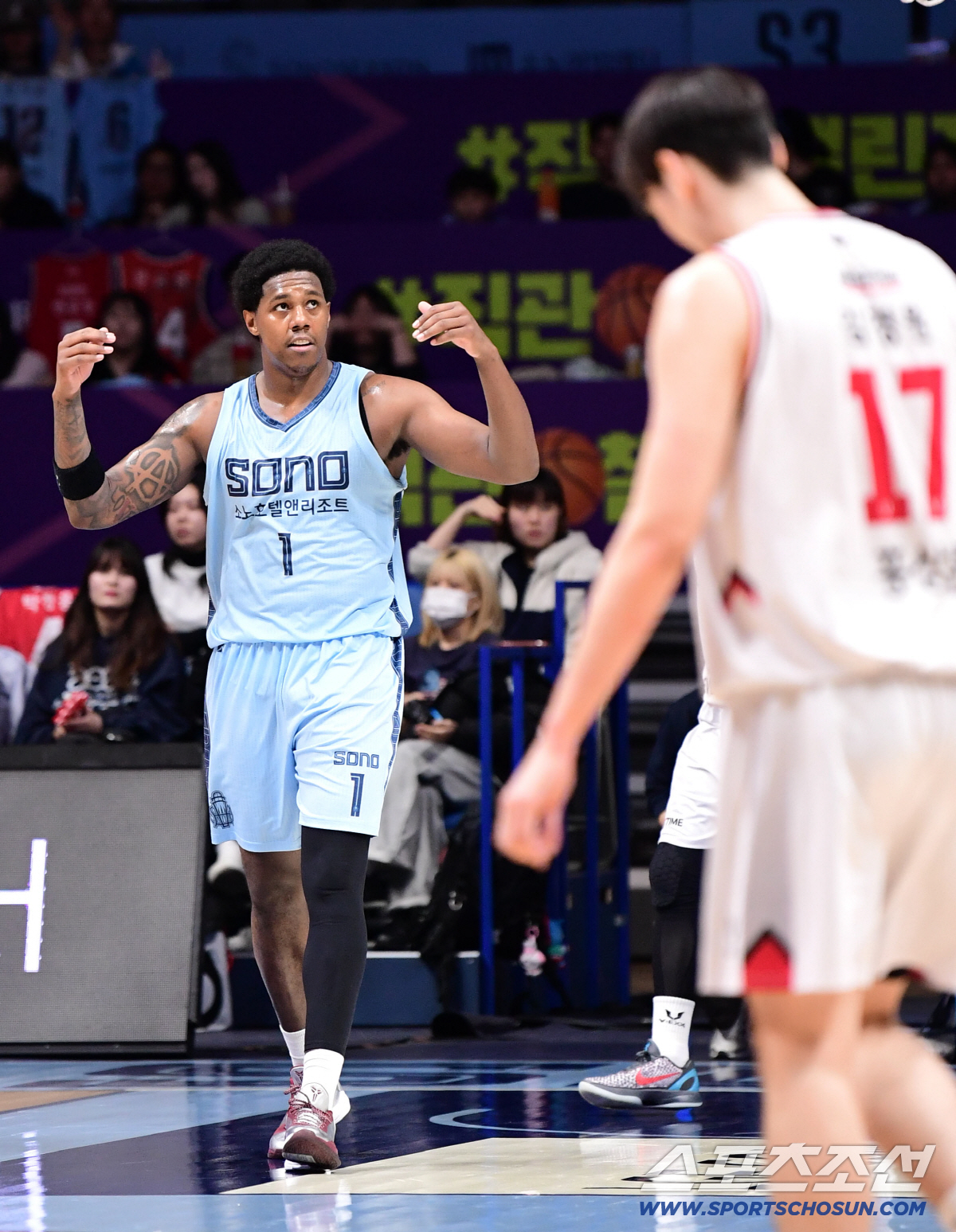 5일 고양 소노아레나에서 열린 프로농구 고양 소노와 안양 정관장의 경기. 호쾌한 덩크슛을 성공시킨 소노 나이트. 고양=송정헌 기자songs@sportschosun.com