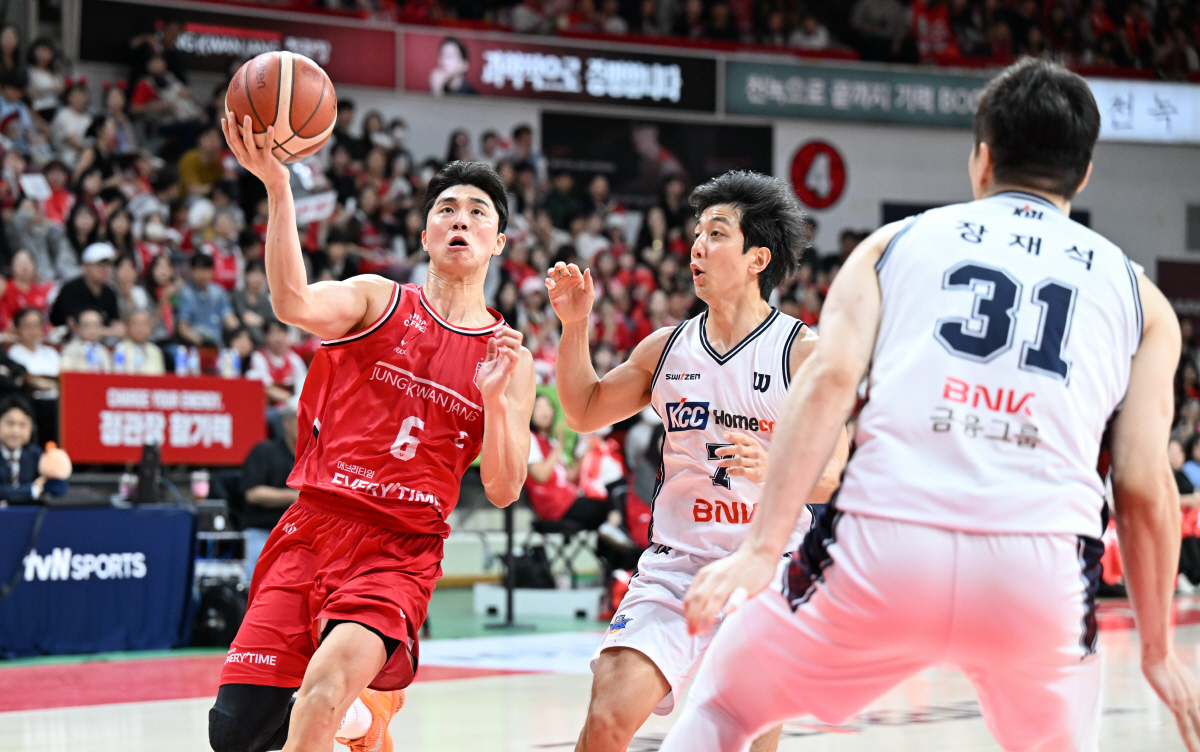 정관장은 26일 안양 정관장아레나에서 벌어진 '2025~2026 LG전자 프로농구' 4강 플레이오프(5전3선승제) 2차전 부산 KCC와의 홈경기서 막판까지 이어진 접전 끝에 91대83으로 승리했다. 이로써 1차전 패배 후 1승을 거둔 정관장은 28일 부산으로 장소를 옮겨 3차전을 치른다.