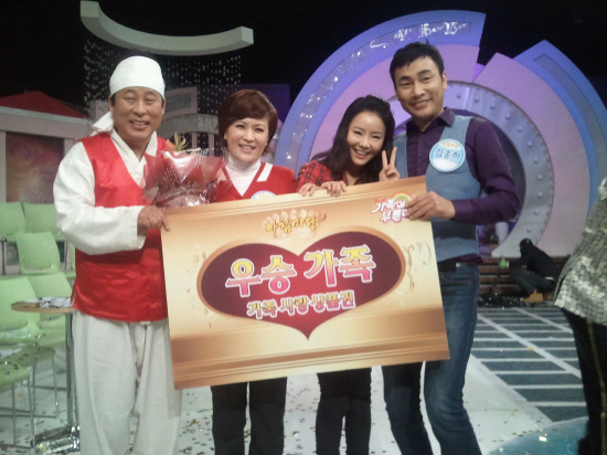김정연이 조문식 김종하 등 '6시 내고향' 대표선수로 출연해 우승을 차지한 뒤 기쁨을 나누고 있다. 왼쪽에서 두번째가 김정연.