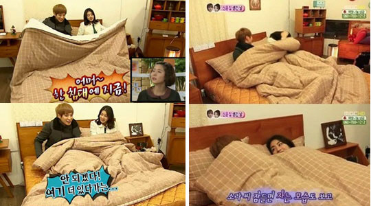 가수 이특과 배우 강소라 커플은 7일 방송된 MBC '우리 결혼했어요'(이하 '우결')에서 결혼 4개월만에 신혼집을 마련하고 가구 쇼핑에 나섰다. 화장대와 소파 등을 고르며 은근한 스킨십으로 신혼 부부의 설레이는 모습을 보여주던 침대를 보면서 "직접 누워보고 편안한 것으로 고르자"며 나란히 누워 묘한 분위기를 연출했다.