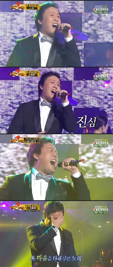 네티즌들도 "4/4분기의 남자 정준하가 2012년은 자신의 해로 만들 것 같다" "정준하가 보통 남자들의 마음을 대변해줬다" "화려하지 않아도 진심은 통한다는 걸 느끼게 해준 무대였다"라며 뜨거운 박수를 보냈다. 김표향 기자 suzak@sportschosun.com