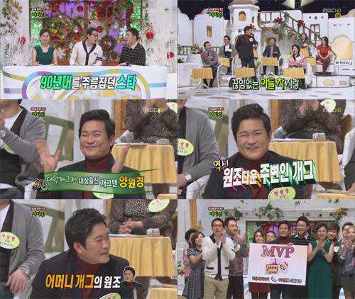 이날 '90년대 개그계의 반항아'로 소개된 양원경은 원조 '가족, 주변인 개그'를 선보이며 시청자를 폭소케 했다. 특히 양원경은 "어머니와 함께 서울에 왔는데 차 내비게이션에서 나오는 여자 안내 목소리를 들은 어머니가 '이 여자 이 동네 사는 갑다'라고 말했다"는 일화를 소개해 가족개그의 진수를 선보였다. 매니저에 관한 에피소드에선 "고향 후배가 로드 매니저를 자처한 첫날 야간업소를 갔는데, 술이 공짜라서 후배에게 과일과 맥주를 대접했는데 후배가 멜론을 들고 웨이터를 불러 '공짜로 준다니까 먹는 건데…, 호박을 과일안주로 주면 어떡하냐'며 따졌다"고 말해 모든 출연진들을 박장대소하게 만들었다.