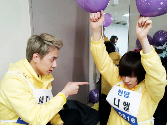9일 TOP미디어 공식 트위터를 통해 니엘과 앤디의 사진이 공개됐다. 사진에서 니엘은 MBC '아이돌 육상 선수권 대회'에 동반 출연한 앤디에게 벌을 받는 듯 높이 들어올린 양손에 풍선을 꼭 쥐고 있는 모습이다. 앤디는 "니엘아!! 더 잘하라구!"라는 말을 덧붙이며 후배인 니엘에 대한 애정을 드러내기도 했다.