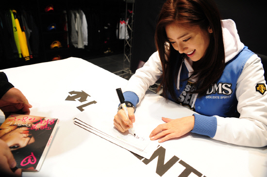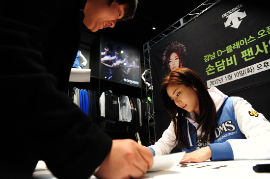 손담비는 지난 10일 서울 신논현역 부근에 새롭게 오픈한 데상트 강남직영점 디-플레이스(D-Place)에서 팬사인회를 가졌다.