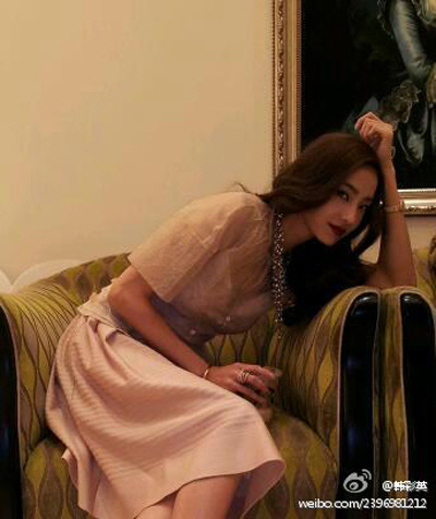 한채영은 10일 자신의 웨이보에 "너무 배고팠는데 밥도 먹고 틈틈이 잠도 자면서 촬영 했어요! 주제는 잠자는 숲속의 미녀? 화려한 분홍빛 드레스 입고 열심히 일하고 있어요!"라는 글과 함께 사진을 게재했다.