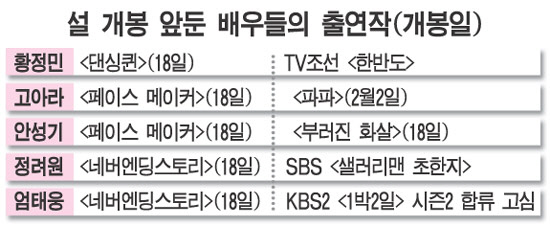 설 개봉 영화 주연들이 두 마리 토끼 잡기에 성공할까. 설 극장가의 또 다른 관전 포인트가 될 전망이다.