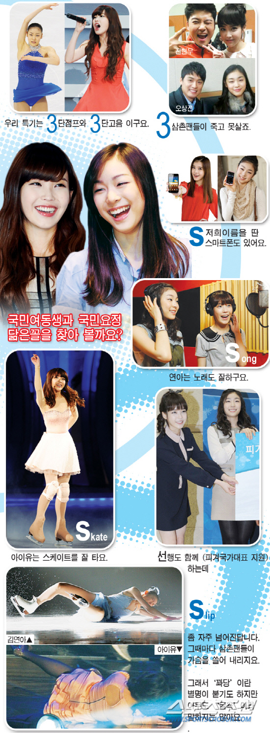 요즘 대세인 가수 아이유와 이제는 세계적인 스타가 된 피겨 김연아가 만났다. 같이 부른 노래 '얼음꽃'의 음원수익금을 피겨 국가대표 지원금으로 내놓기 위한 자리였다. '국민 여동생'과 '국민 요정'이라는 두사람의 수식어만큼이나 닮은점이 많은 이들의 행보를 추적했다.